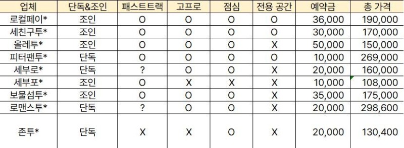 보홀 투어 현지 업체 가격 공유 및 조언?